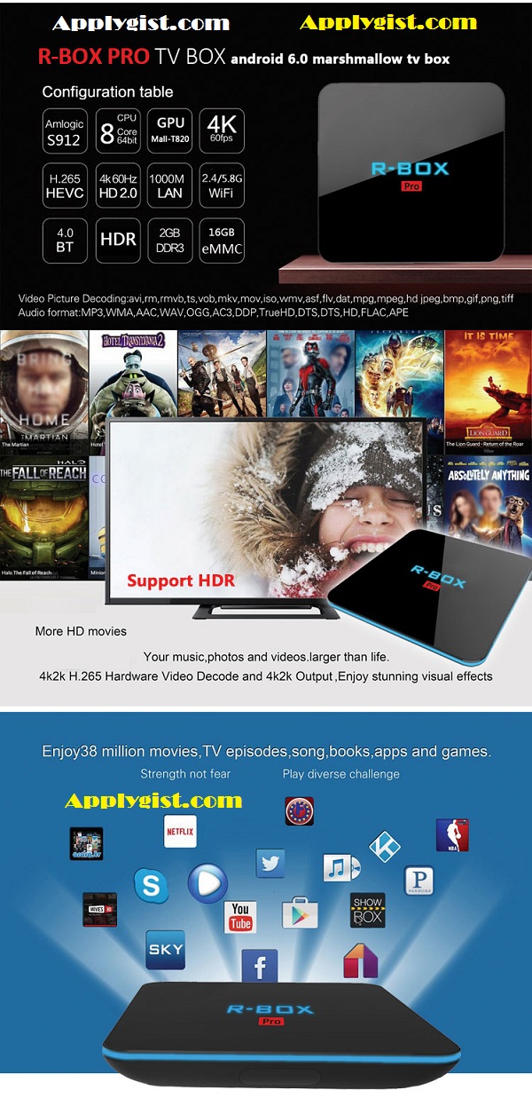 R-BOX Pro accompanies S912 CPU which is an elite octa center 64bit chipset which is known for a most extreme clock speed of up to 2.0GHz. Applications will never run so easily in other chipset gadgets. Individuals can without much of a stretch appreciate numerous hot recreations and APKs with its 3GB DDR3 RAM and 16GB Flash ROM. mini m8s tv box