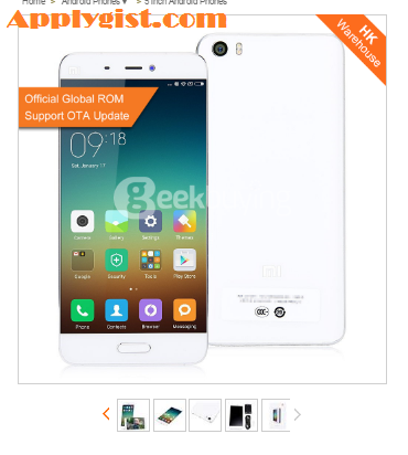 [HK Stock][Official Global ROM]Xiaomi Mi5 5.15inch FHD Android 6.0 OS 3GB 32GB 4G LTE Smartphone 64-Bit Qualcomm Snapdragon 820 Quad Core Type-C 3D Glass Cover – White