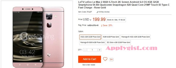 best cell phone deals LeTV LeEco Le Max 2 X820 5.7inch 2K Screen Android 6.0 OS 4GB 32GB Smartphone 64-Bit Qualcomm Snapdragon 820 Quad Core 21MP Touch ID Type-C Fast Charge – Rose Gold Price:USD 199.99
