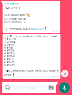 When time is up, Wiki Bot gives you the winner and also some more other words that can be extracted from the given letters or alphabets.