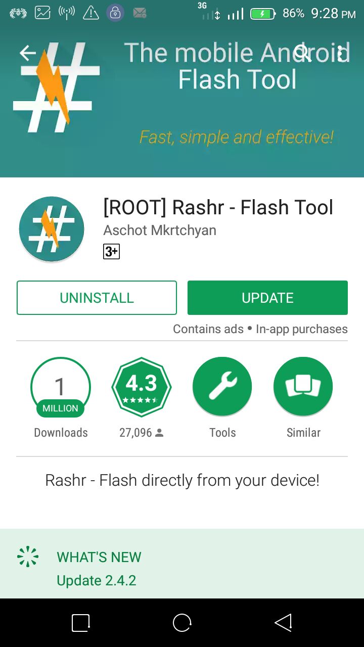 2. Then head over to google play store, download Rashr Flash tool.
