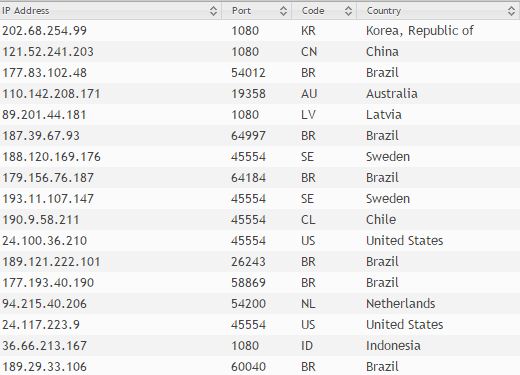Proxies — PORT—- COUNTRY– Level Of Anonymity