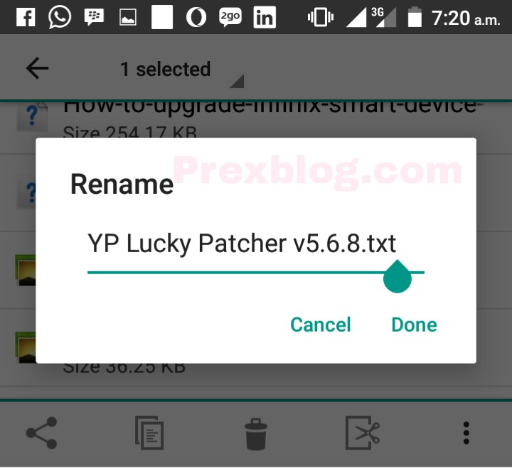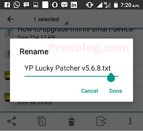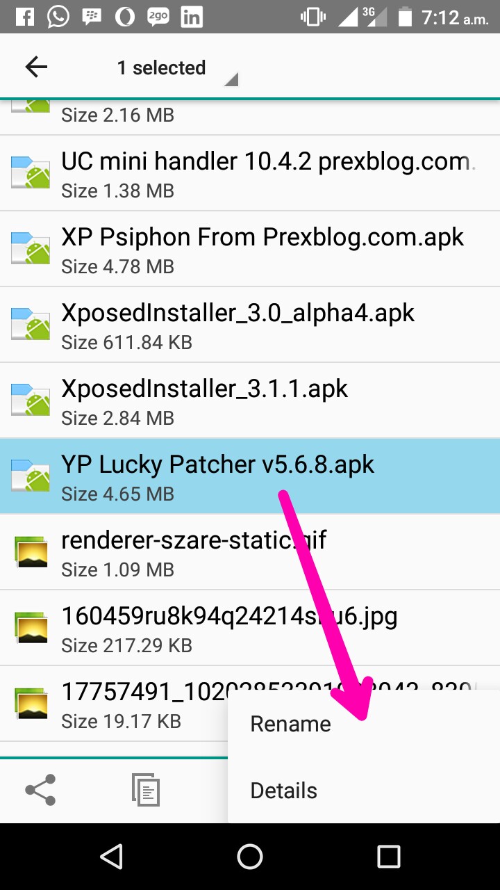 - Then, open your phone file manager and locate the Apk file you want to send then, hold to bring the options for RENAME. You can now rename the .apk to .txt and press OK. As shown below;