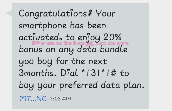 - Then, you will receive a successful message from MTN within a period of time or instantly, saying; “Congratulations! Your smartphone has been activated to enjoy 20% bonus on any data you buy for the next 3months.”.