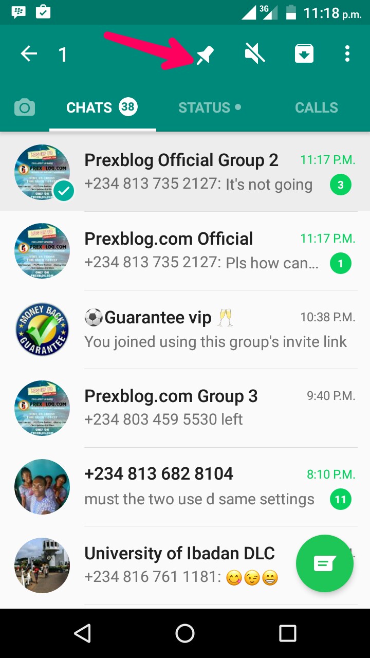 You can now pin a chat on WhatsApp just like that of Telegram group. This feature is one of the best way to keep your conversations for later use. Friends, families and other contacts might hold conversations with you but to keep them, you would have to pin the chats in order to locate them faster. For now, only 3 chats can be pinned to the top.