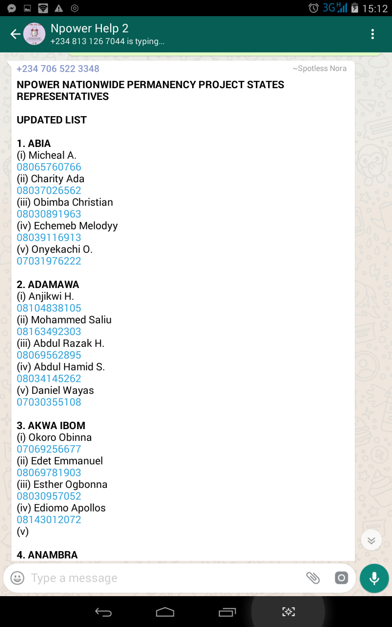 *9. CROSS RIVER NPOWER NATIONWIDE STATES REPRESENTATIVES * (i) Erasmus Nfawa 08062368772 (ii) Abang Elvis 08038403669 (iii) Nsor Konye 08093609088 (iv) Onah Eze 08032691132 (v)